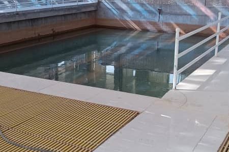 - رفع نشتی حوضچه فلومتر خروجی تصفیه خانه